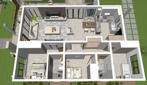 Mặt bằng bố trí phòng nhà vườn 3 phòng ngủ